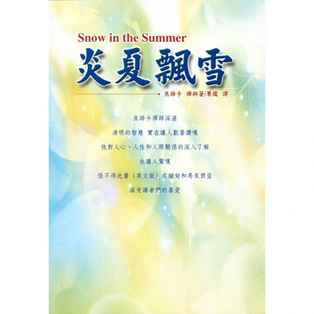 《炎夏飄雪》,焦諦卡禪師著,果儒譯。本書是緬甸僧人焦諦卡禪師所寫的信件選集,整理成「心、正念和禪修」、「獨處」、「父母的愛與指導」、「生活、生與死」、「學習與教導」、「價值與哲學」及「友情、人際關係與慈心」等的七個篇章。